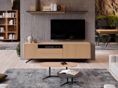 Le meuble TV doit être optimisé et réfléchi pour votre matériel Hifi. Pensez à bien mesurer les dimensions de vos appareils. Certains meubles TV offrent la possibilité d’une porte spéciale Hifi, qui laisse passer les ondes de la télécommande tout en masquant les appareils souvent jugés disgracieux.